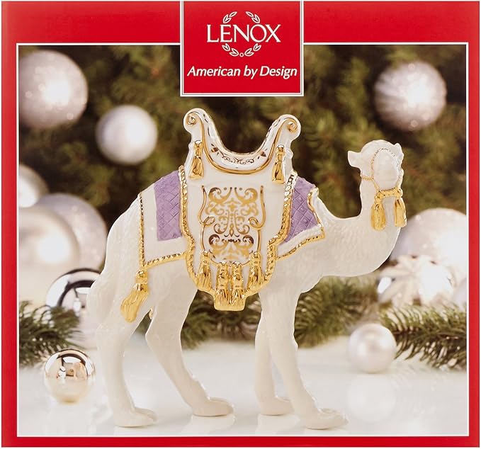 Approximately 5 inches tall (13 cm). Lenox ivory china, gold, painted highlight. The ultimate way to make the most for the money these days in by online shopping. Lenox first blessing nativity woman with water jug sculpture. This finely detailed kneeling camel figurine is a welcome addition to any native scene.